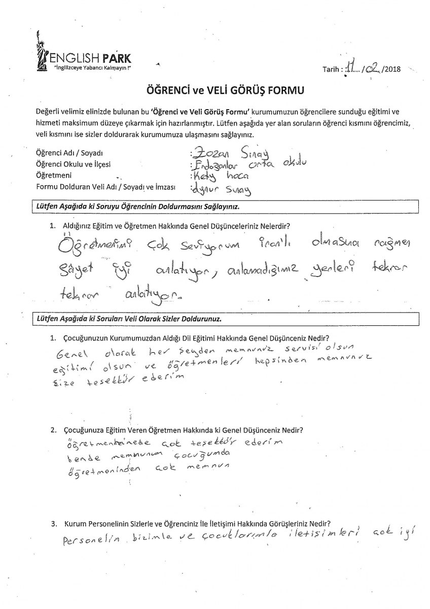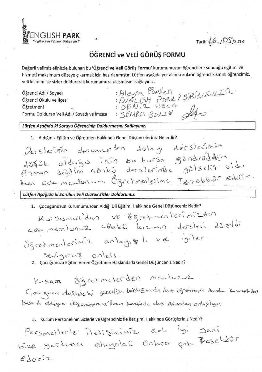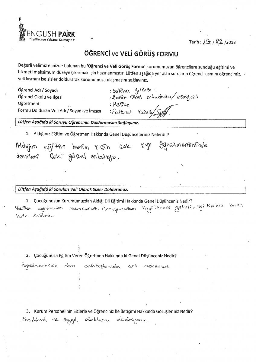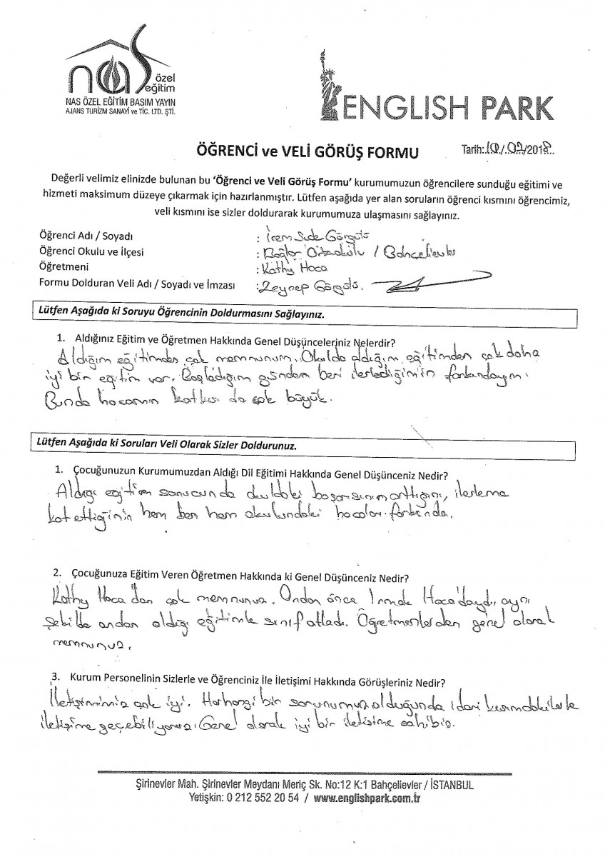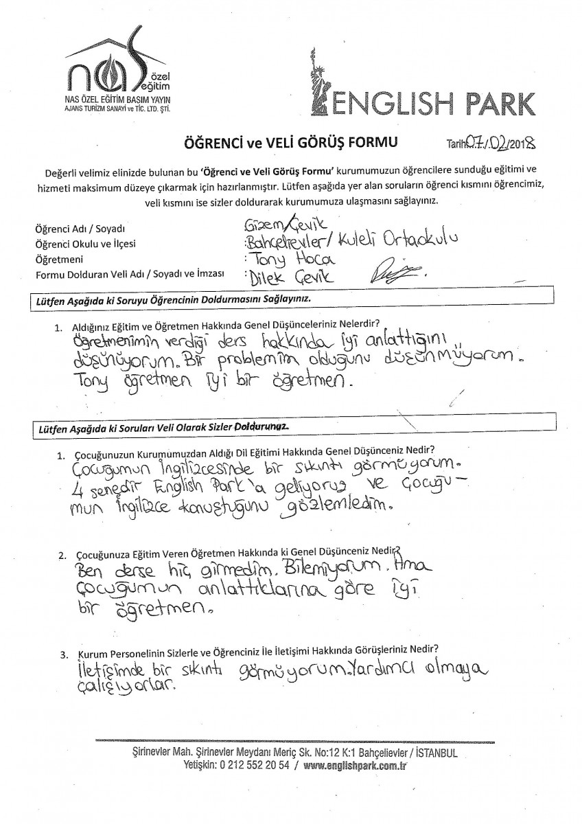 EnglishPark’ta eğitim alan öğrencilerimizin deneyimleri, bizim en güçlü referanslarımızdır. Her biri farklı hedeflerle yola çıkan öğrencilerimiz, İngilizce öğrenme serüvenlerinde yaşadıkları gelişimi ve memnuniyeti samimi bir dille paylaşıyor.