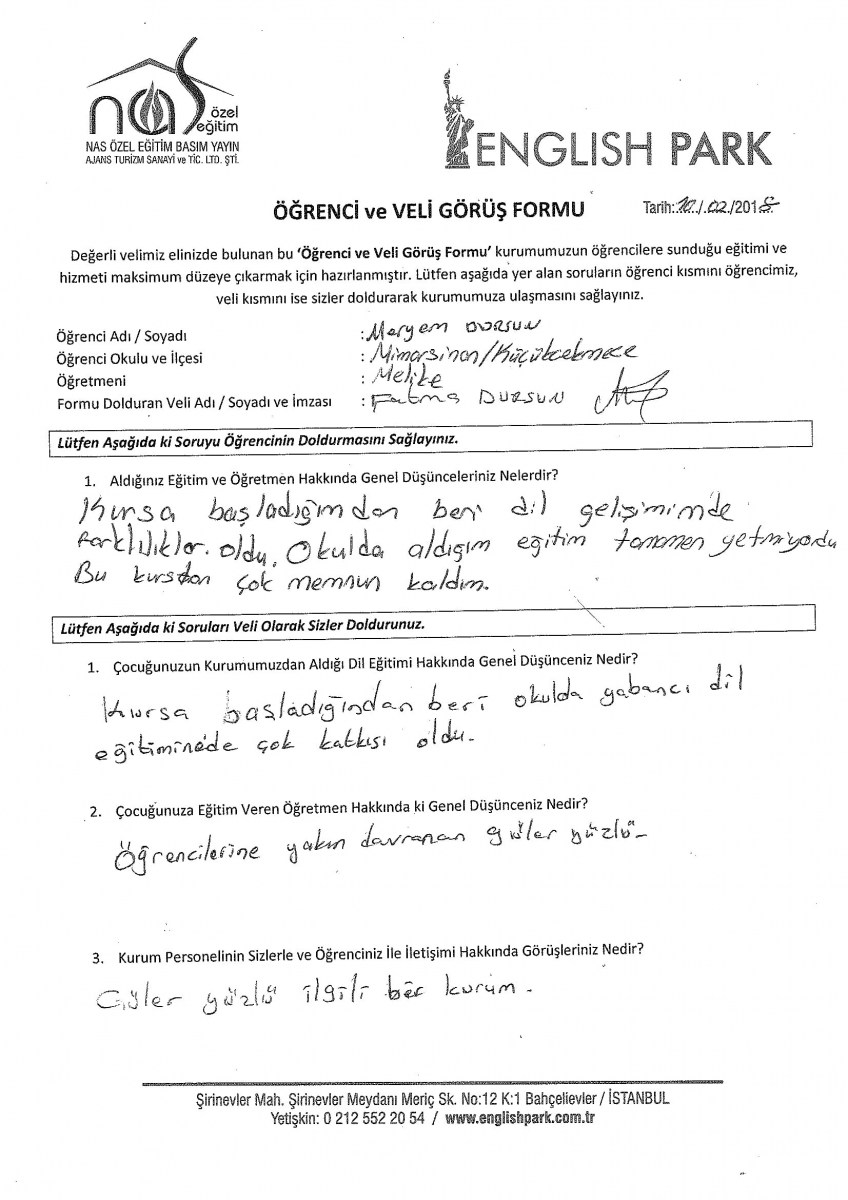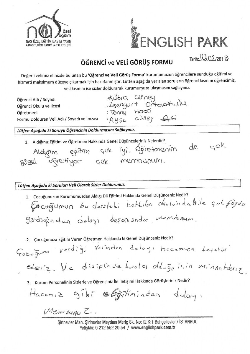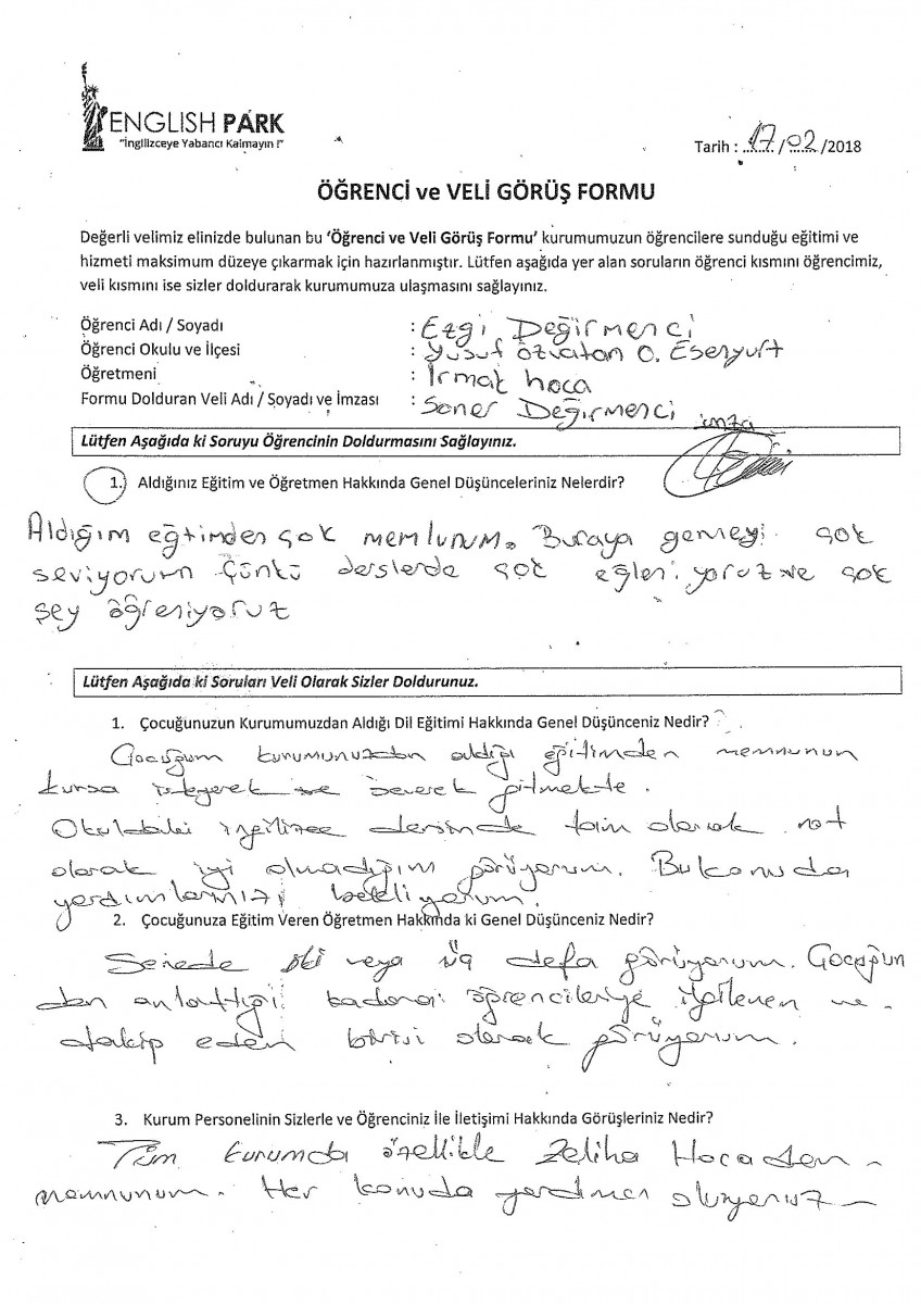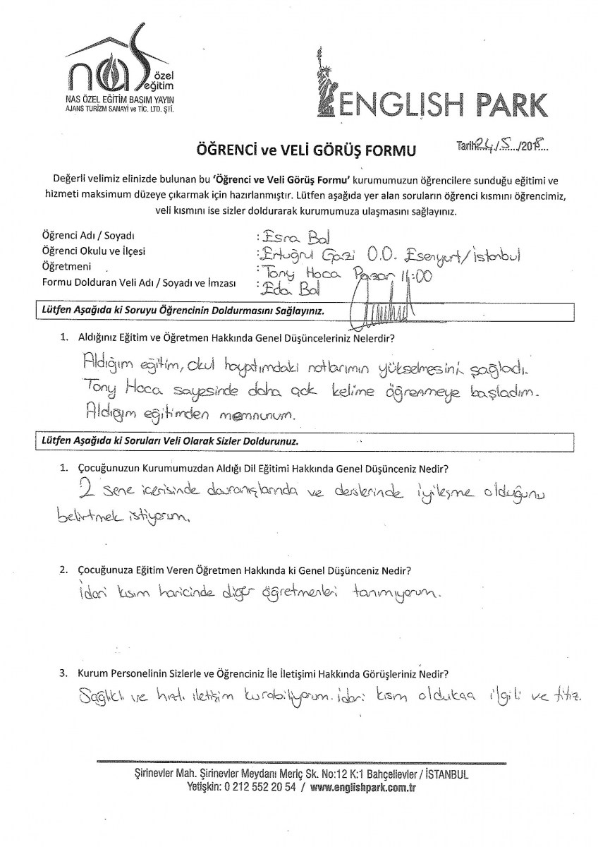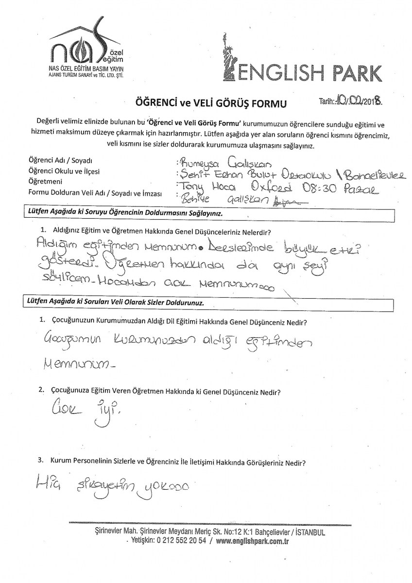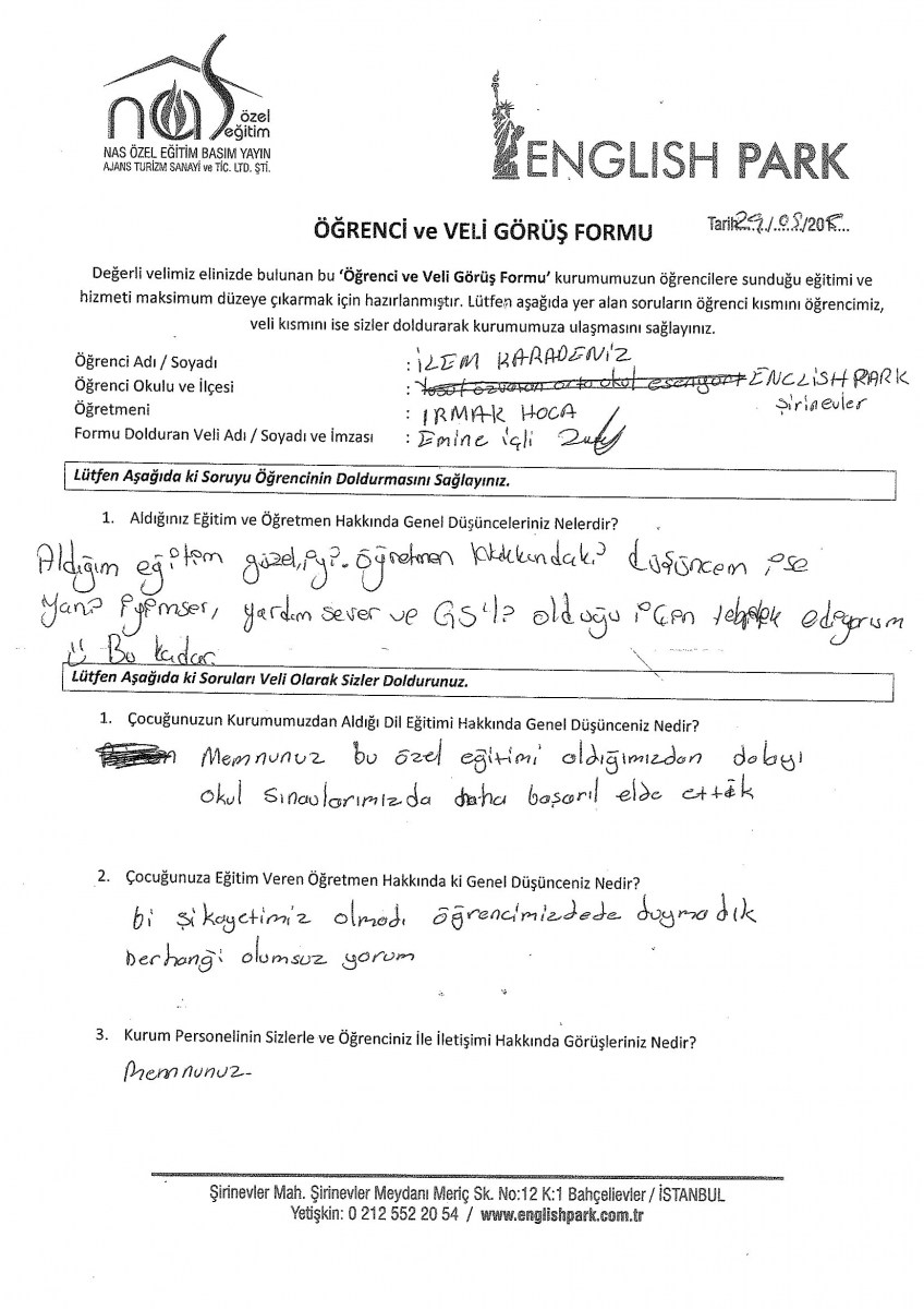 EnglishPark’ta eğitim alan öğrencilerimizin deneyimleri, bizim en güçlü referanslarımızdır. Her biri farklı hedeflerle yola çıkan öğrencilerimiz, İngilizce öğrenme serüvenlerinde yaşadıkları gelişimi ve memnuniyeti samimi bir dille paylaşıyor.